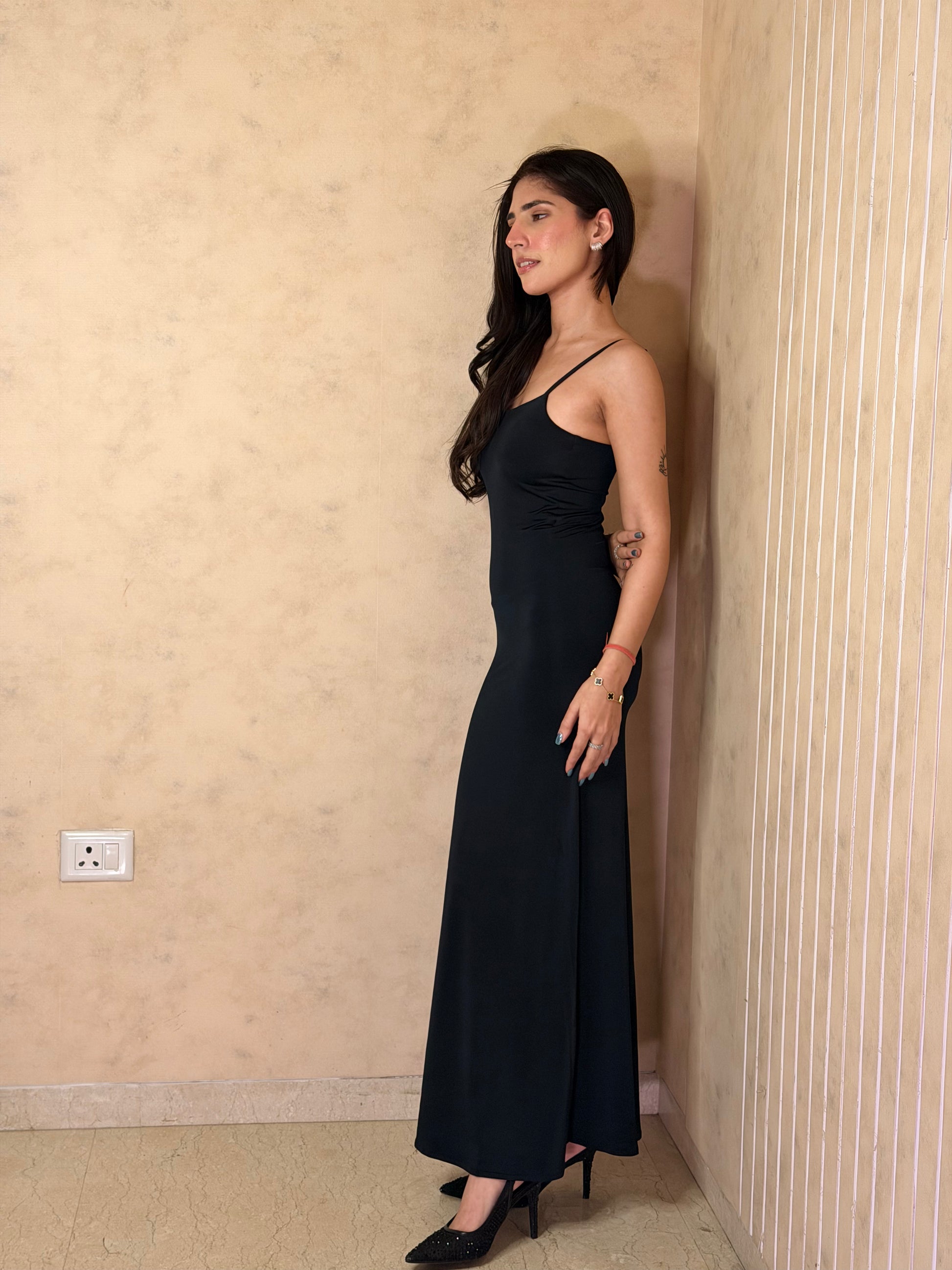 Subtle, striking, and effortlessly chic — the Dusk Bodyfit Maxi contours the body with smooth precision. The clean neckline and adjustable slim straps create a personalised fit, while the soft stretch fabric offers movement without compromising shape. The fluid floor-length hem completes a timeless, minimal silhouette.